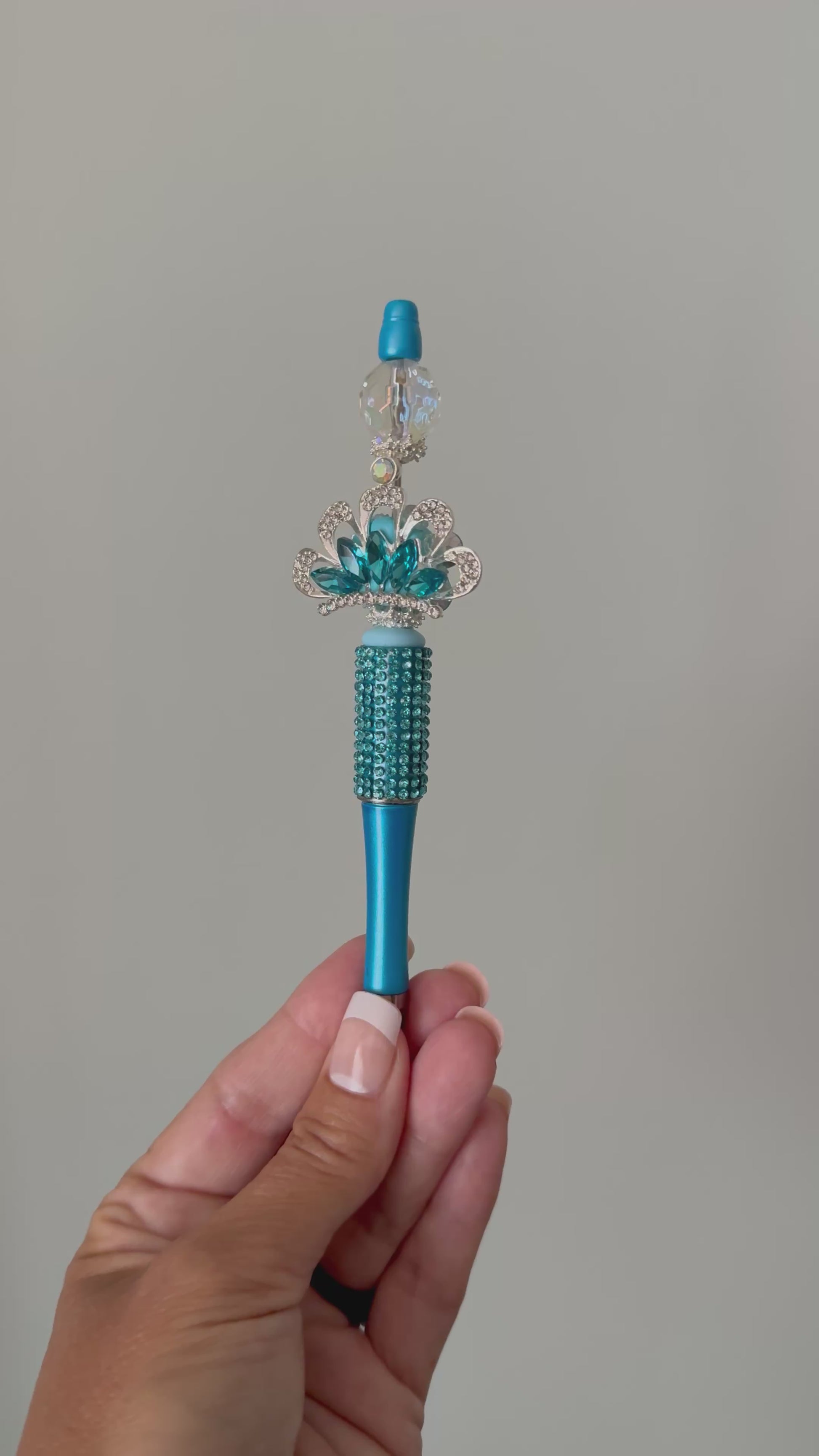 Elevate your writing experience with the Blue Royal Bloom Beaded Pen. This elegant twist-to-open pen features rich teal beads, sparkling rhinestone accents, and a statement crown charm that adds a regal flair. Perfect for journaling, gifting, or treating yourself to something beautiful. Writes in smooth black ink and fits comfortably in your hand for everyday use.Handmade with love and attention to detail.