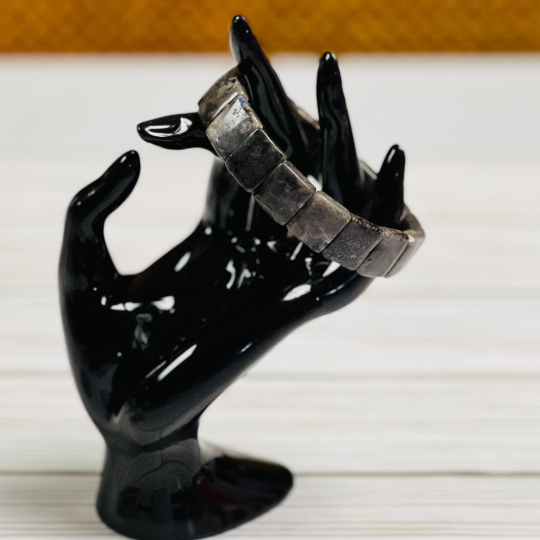 Step into the enchanting world of Midnight Blossom with our Black Flower Agate Bracelet Bangle. Each intricately crafted piece showcases the mesmerizing beauty of black flower agate, adorned with delicate floral patterns that evoke the mystery and allure of midnight blooms. This bracelet bangle exudes elegance and sophistication, making it the perfect accessory to complement any outfit. Let the grounding energy of black flower agate empower you as you embrace your inner strength and beauty. Elevate your style with the timeless charm of our Midnight Blossom bracelet bangle and make a statement wherever you go.