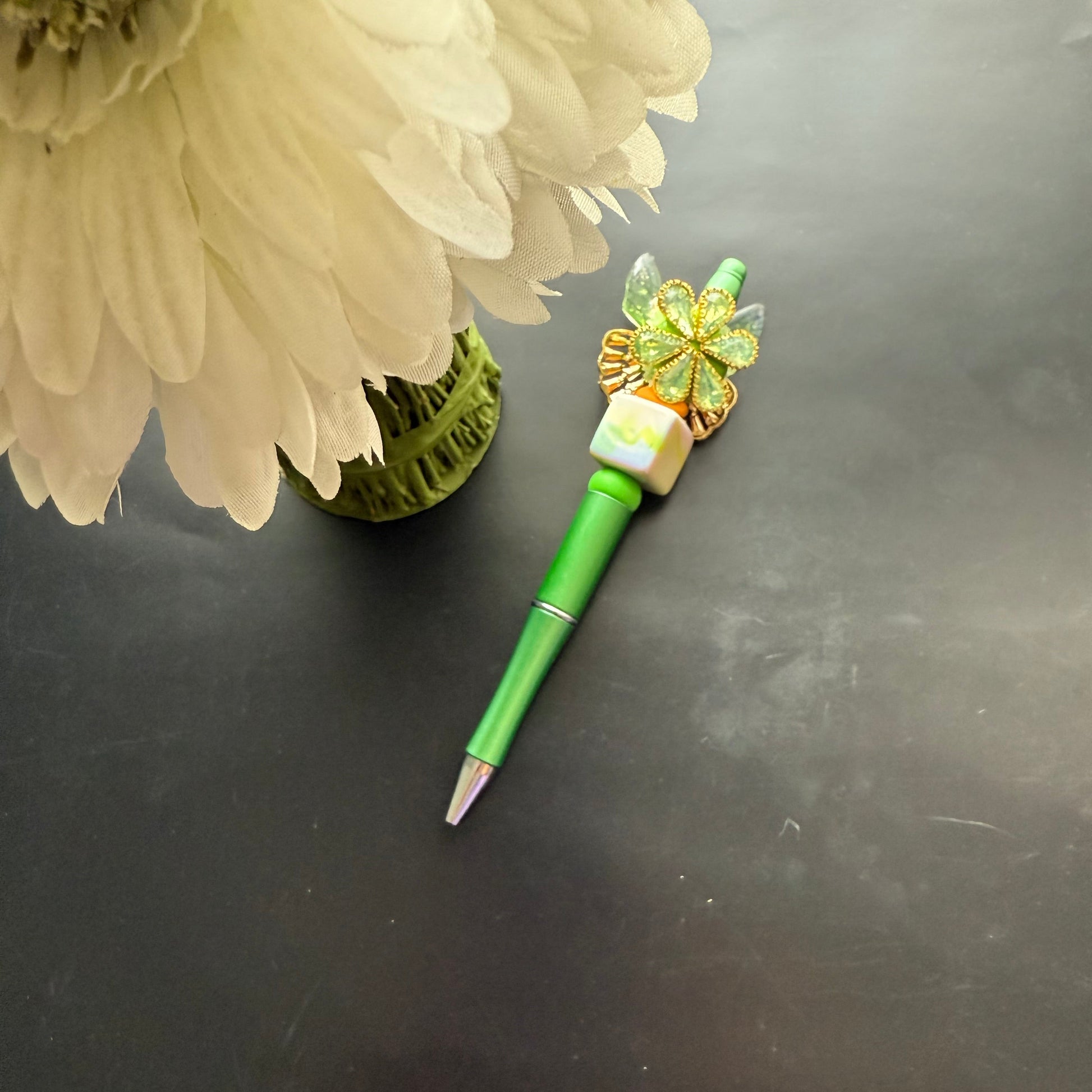 This soft green beauty features a translucent winged butterfly with delicate shimmer, sitting above a mix of citrus and pearl-toned beads. It’s a breath of fresh air for your desk or gift list!
